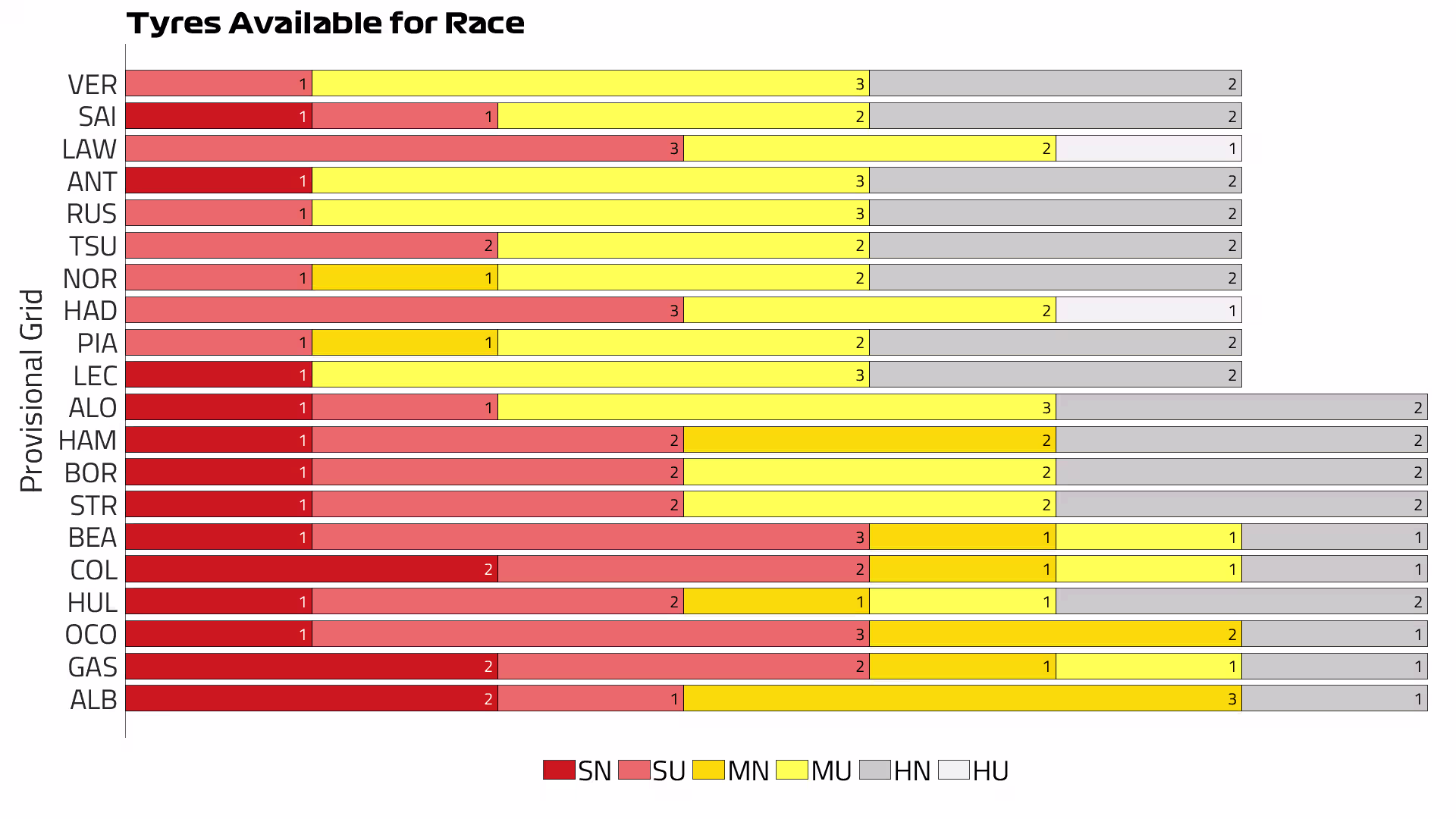 В этот редкий уик-энд у всех есть шины для выбора любой стратегии, которая придётся им по вкусу, так что для первой десятки несколько досадно, что наиболее вероятным альтернативным подходом, как и в прошлом году, является один пит-стоп по схеме хард-медиум, оптимальное окно для которого находится между 29-м и 35-м кругами.