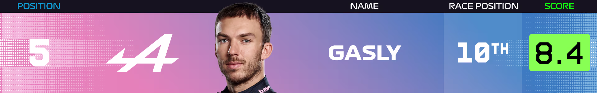 Прибыв в Сан-Паулу, Alpine не имела в своем активе очков с Гран-при Бельгии в июле. Однако Пьер Гасли пополнил их копилку на Интерлагосе, причем дважды. Восьмое место в спринте сменилось десятым местом в воскресенье. Это уверенное выступление француза обеспечило ему место в пятерке лучших в Рейтинге Силы.